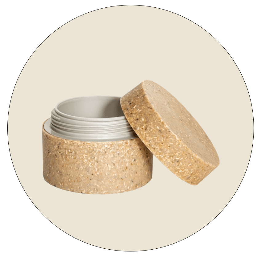 50 ml Arctic Frost. Rondvormige premium duurzame cosmetica creme pot. Gemaakt van patenteeerde dubbelaags bio-based Sulapac Premium (SUL-P) structuur met HK nek afwerking. Collectie Arctic Frost is een hoogwaardige recyclebare en composteerbare verpakkingsoplossing voor cosmetische toepassingen op waterbasis. Buitenlaag heeft grote zichtbare houtsnippers in het oppervlak. Afmetingen: (D x H) 47 mm x 65 mm en een gewicht van 71 gram.